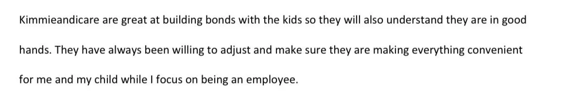 Meet Kimberly Altman, 29 years of age, full time childcare worker, young, reliable and driven. Childcare became a secondary source of income when Kim was in college back in 2015. It wasn't until the pandemic that Kim was pushed to do childcare full-time. Kim prides herself for the way she manages serval different client schedule request and needs from each client. She makes every child feel safe under her care. She admits that this line of work can be challenging but she till does it with ease and enjoys every moment.